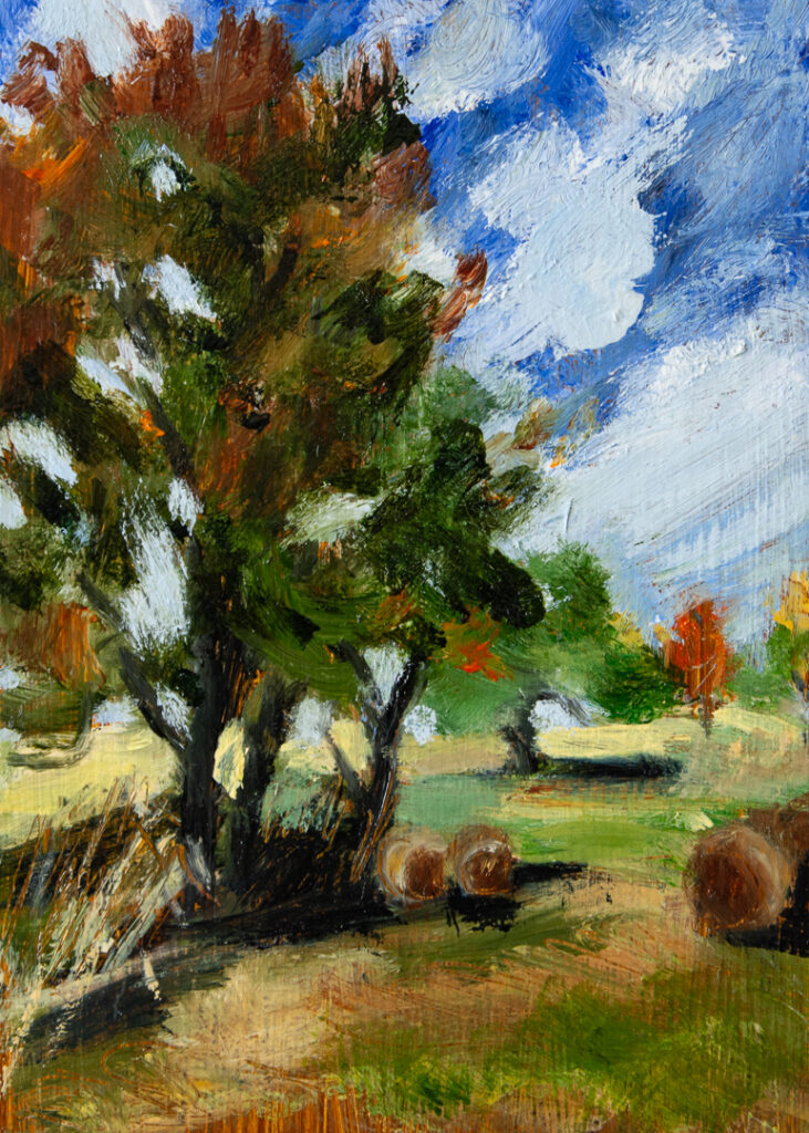 Filed Notes Study, Autumn Fields, Oil on Wood Panel, 5 x 7 inches