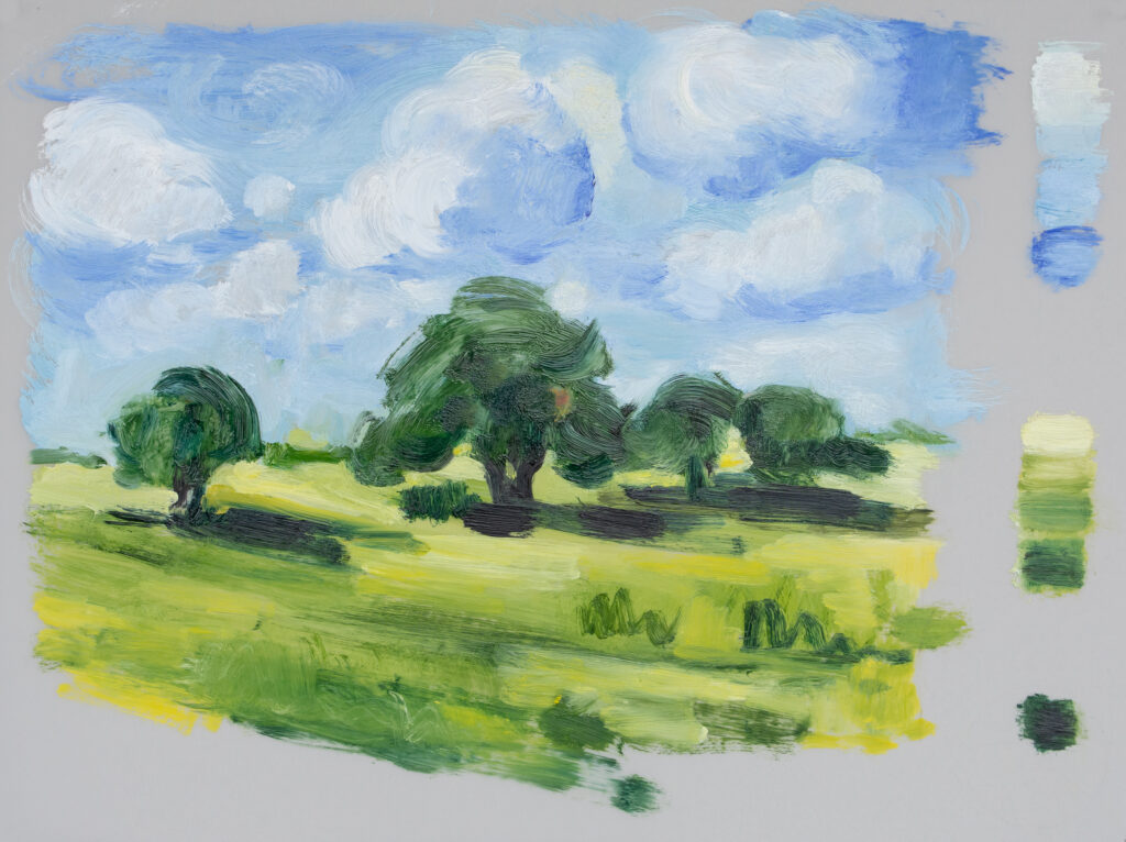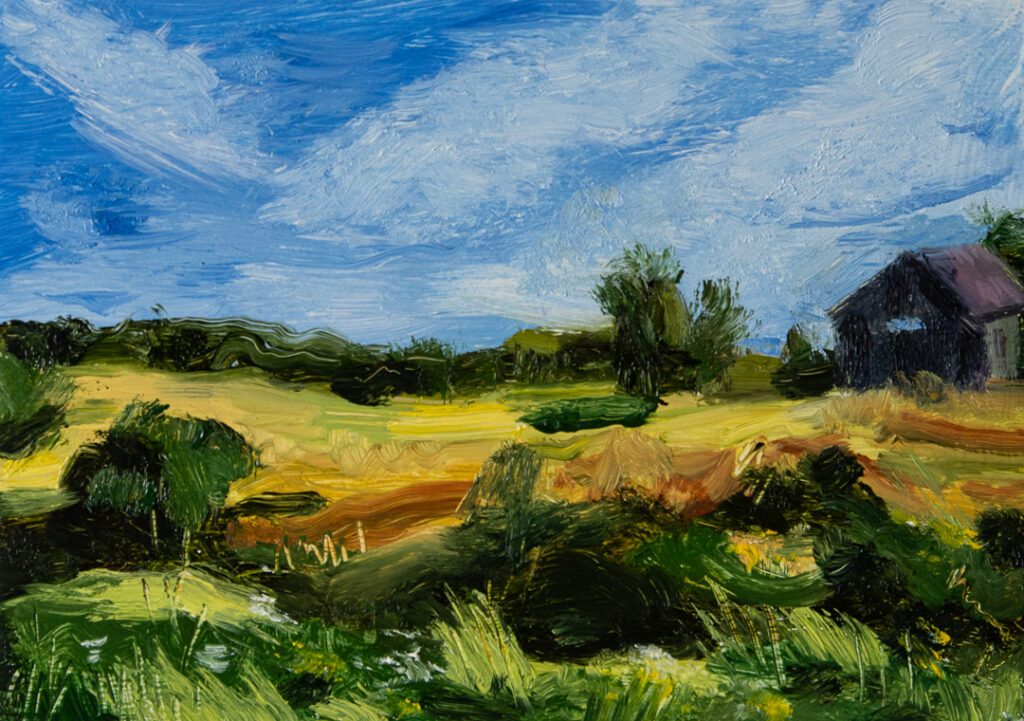 Filed Notes Study, Summer Fields, Oil on Wood Panel, 5 x 7 inches