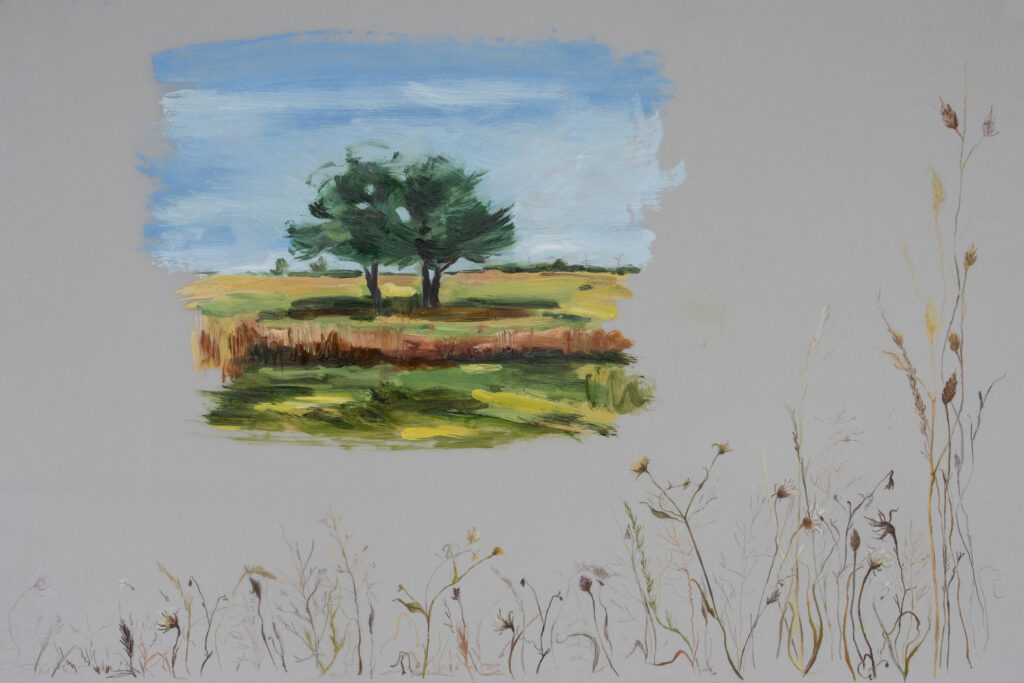 Harvest Meadow, Oil and Coloured Pencil on Mylar, 24 x 36 inches