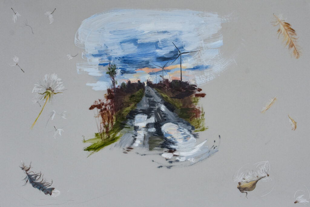 Windsong (Road to the Owl Woods), Oil and Coloured Pencil on Mylar, 24 x 36 inches